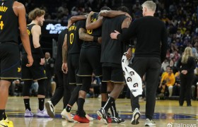 1月20日,在勇士对决热火比赛第三节,当吉米·巴特勒倒在大通中心的地板上,紧握右膝、无法自行起身时,...